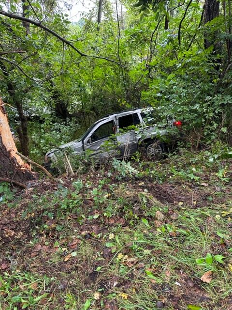 Company 3 responded to a traffic accident at the 500 block of Whitetop Road. Upon arrival, found a Jeep Cherokee with moderate frontal and lateral damages after driving through a