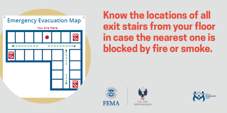 - Know where all the exit doors and stairs are on your floor.